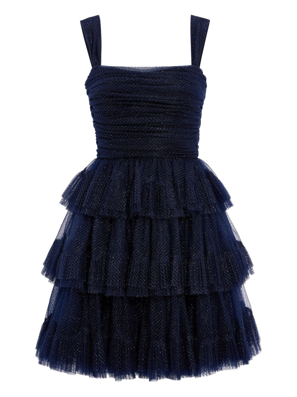 Fall From Grace mini dress Highlights - Dark blue - Square neck - Tiered ruffled skirt - Sleeveless - Glitter-finish tulle Imported Composition Nylon 100% Washing instructions Dry Clean Only