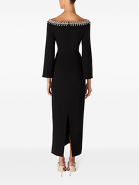 Off-the-shoulder embellished cady midi dress