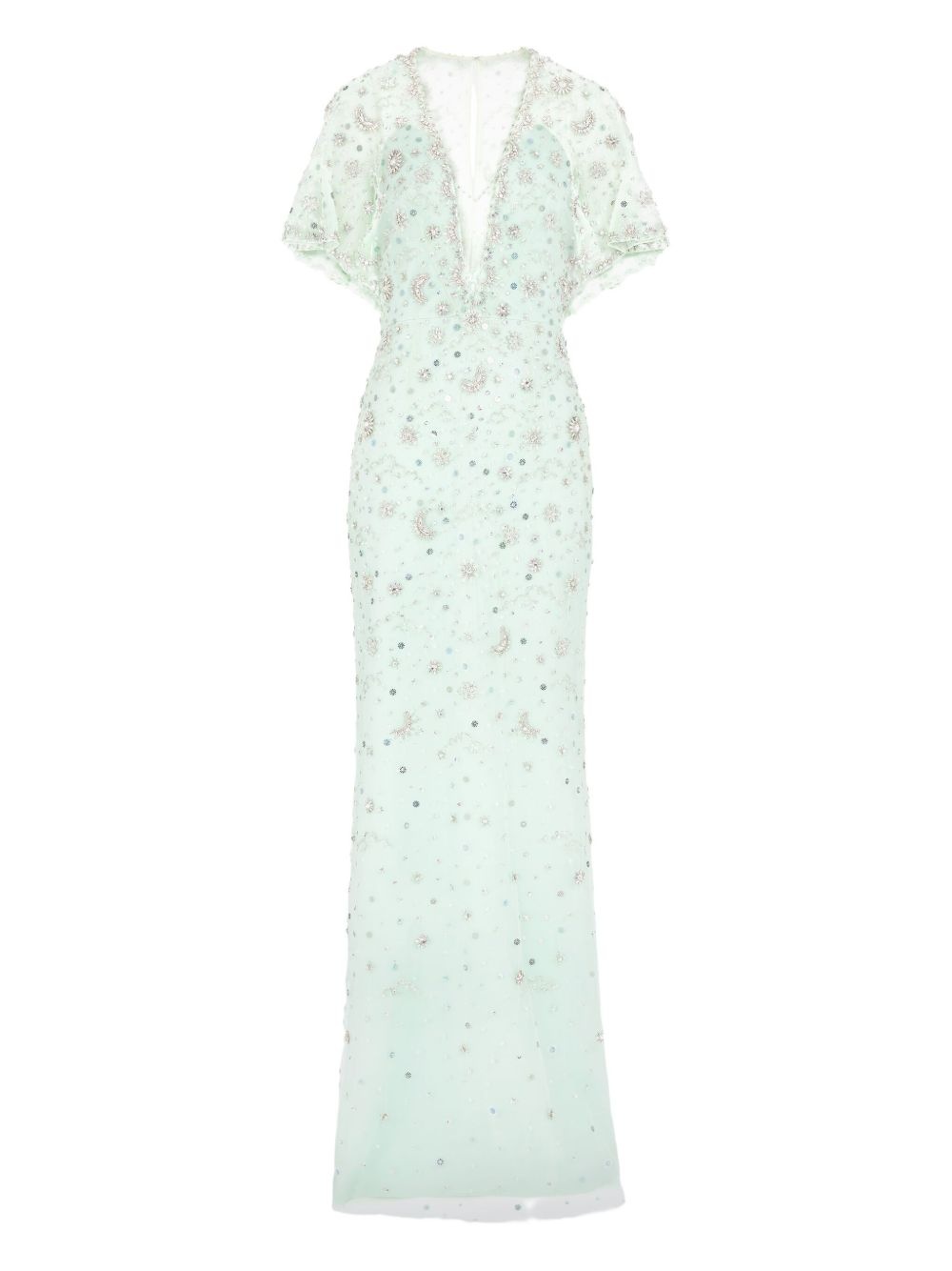 Luna maxi dress Highlights - Aqua blue - Rear zip fastening - Crystal embellishment - V-neck - Short sleeves Imported Composition Polyester 100%