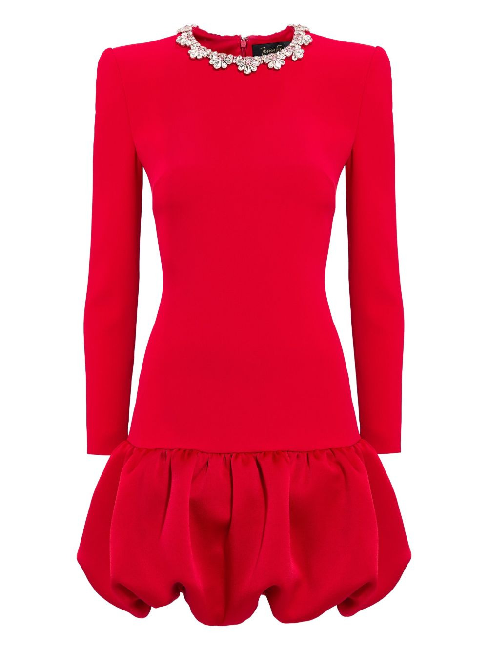 Puff embellished-neck mini dress Highlights - Red - Jewel-embellished neck - Puff shoulder - Long sleeves - Bubble hem - Back invisible-zip fastening Imported Composition Polyester 92%, Polyurethane 8% Washing instructions Read Manufacturer Guidelines