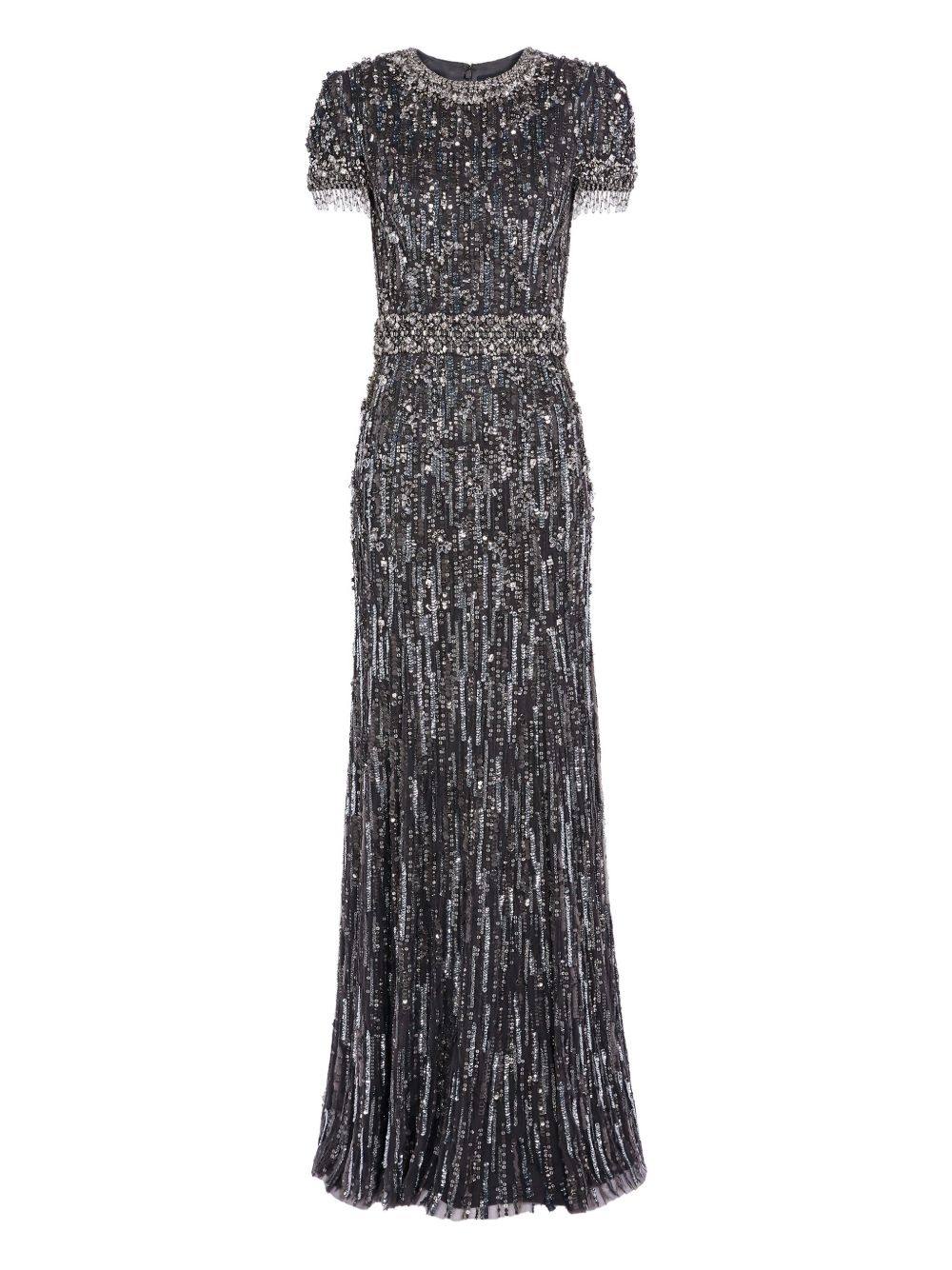 Roxy maxi dress Highlights - Dark grey - Rear zip fastening - Sequin embellishment - Round neck - Short sleeves Imported Composition Nylon 100%