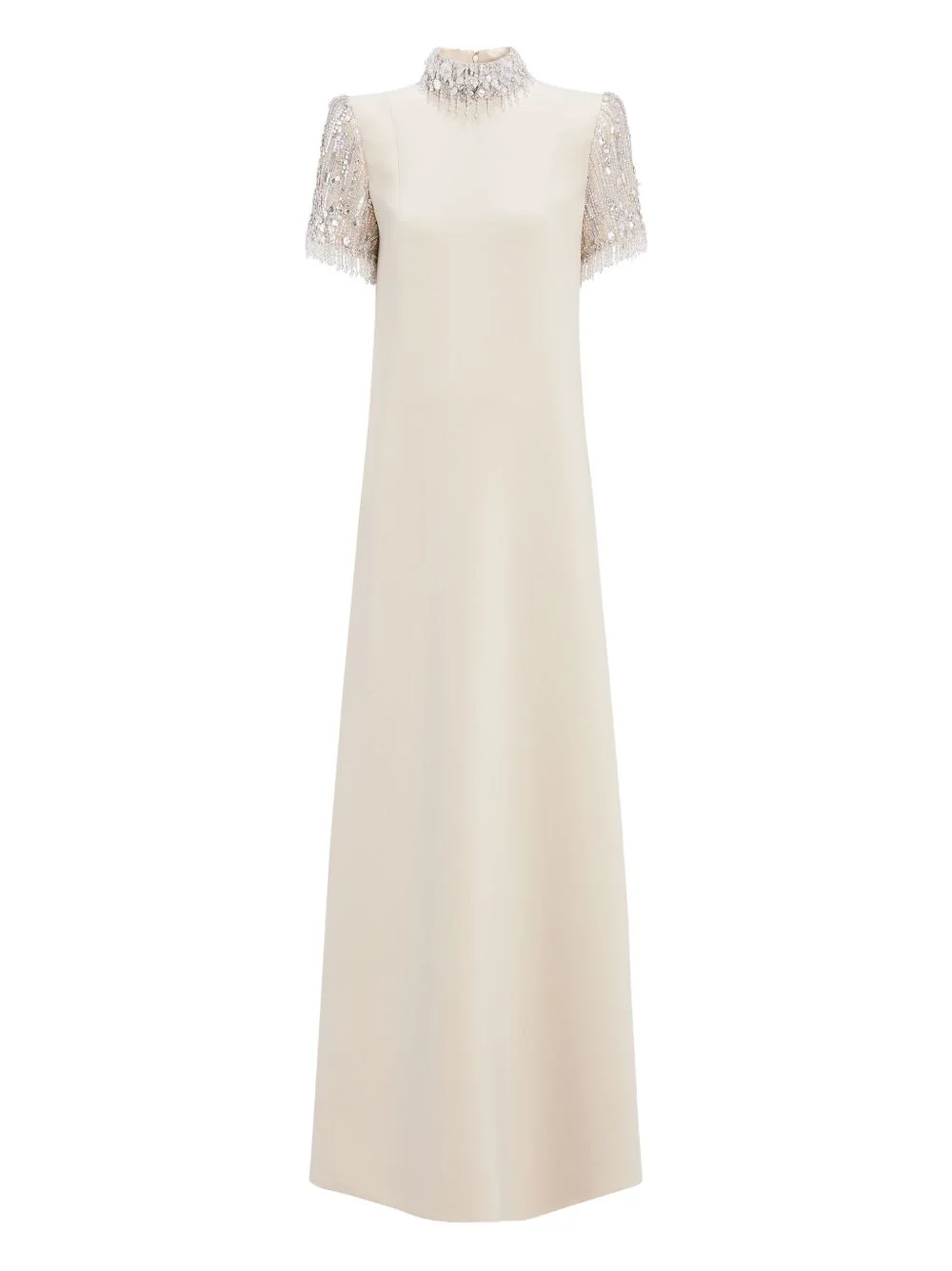 sequin-embellished high-neck maxi dress Highlights - White - High neck - Short sleeves - Sequin embellishment - Beaded embellishment - A-line shape Imported Composition Polyester 92%, Polyurethane 8% Washing instructions Dry Clean Only