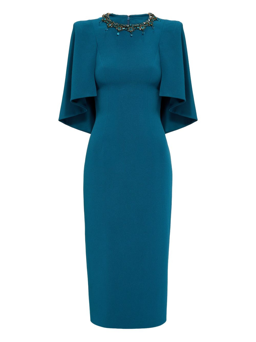 Ursa embellished-neck midi dress Highlights - Teal blue - Cape-style short sleeves - Embellished neck - Back invisible-zip fastening - Midi length Imported Composition Polyester 92%, Polyurethane 8% Washing instructions Dry Clean Only