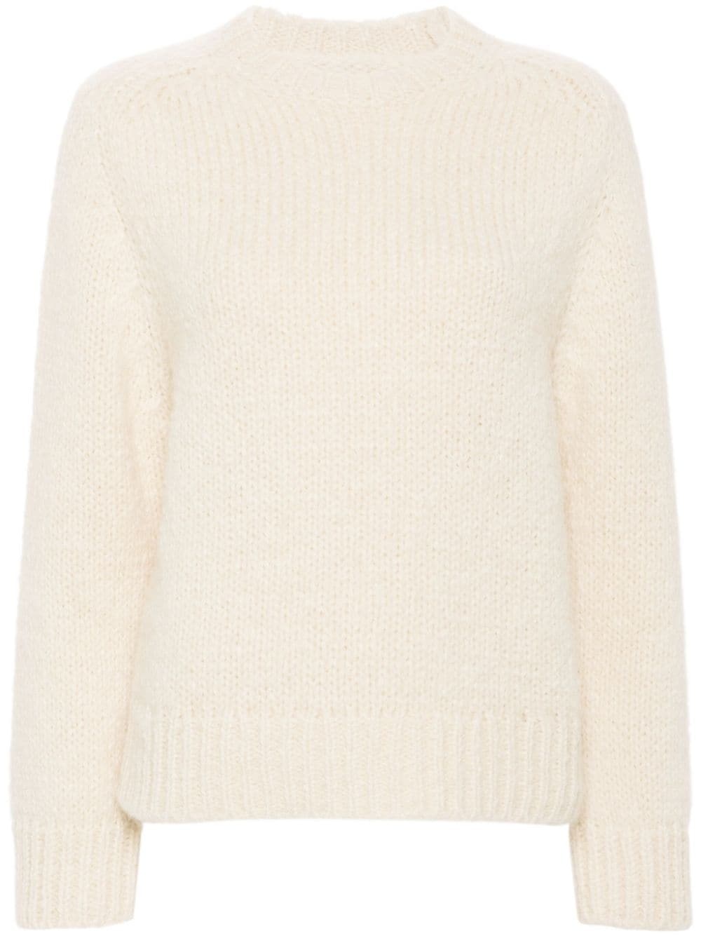 + chunky-knit jumper Highlights - Cream white - Chunky knit - Brushed effect - Ribbed crew neck - Long raglan sleeves - Ribbed cuffs and hem Made in Italy Composition Mohair 43%, Alpaca Wool 43%, Polyamide 14% SIZE & FIT Model measurements Height 5 ft 9 in(1.76 m) Bust/Chest 31.88 in(81 cm) Hips 35.43 in(90 cm) Waist 24.8 in(63 cm) FittingInformation Designed for a relaxed fit, this piece allows for comfort and movement when worn Made with a midweight knit, this piece offers some stretch This piece fits true to size – take your usual size