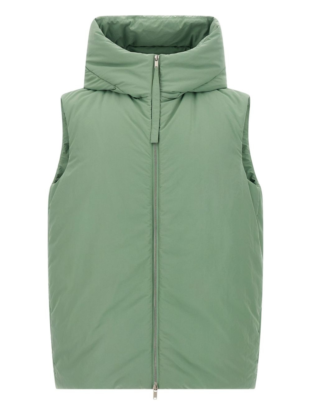160 hooded padded gilet Highlights - Green - Goose down padding - Front zip closure - Side pockets Made in Italy Composition Outer: Leather 100%, Recycled Polyester 100% Lining: Goose Down 100% Washing instructions Read Manufacturer Guidelines
