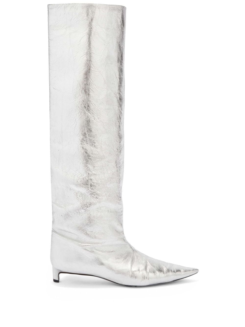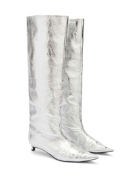 30mm metallic knee boots Highlights - Silver-tone - Leather - Metallic finish - Pointed toe - Pull-on style - Branded leather insole - 30mm low block heel Made in Italy Composition Outer: Lambskin 100% Sole: Leather 100% Lining: Leather 100%