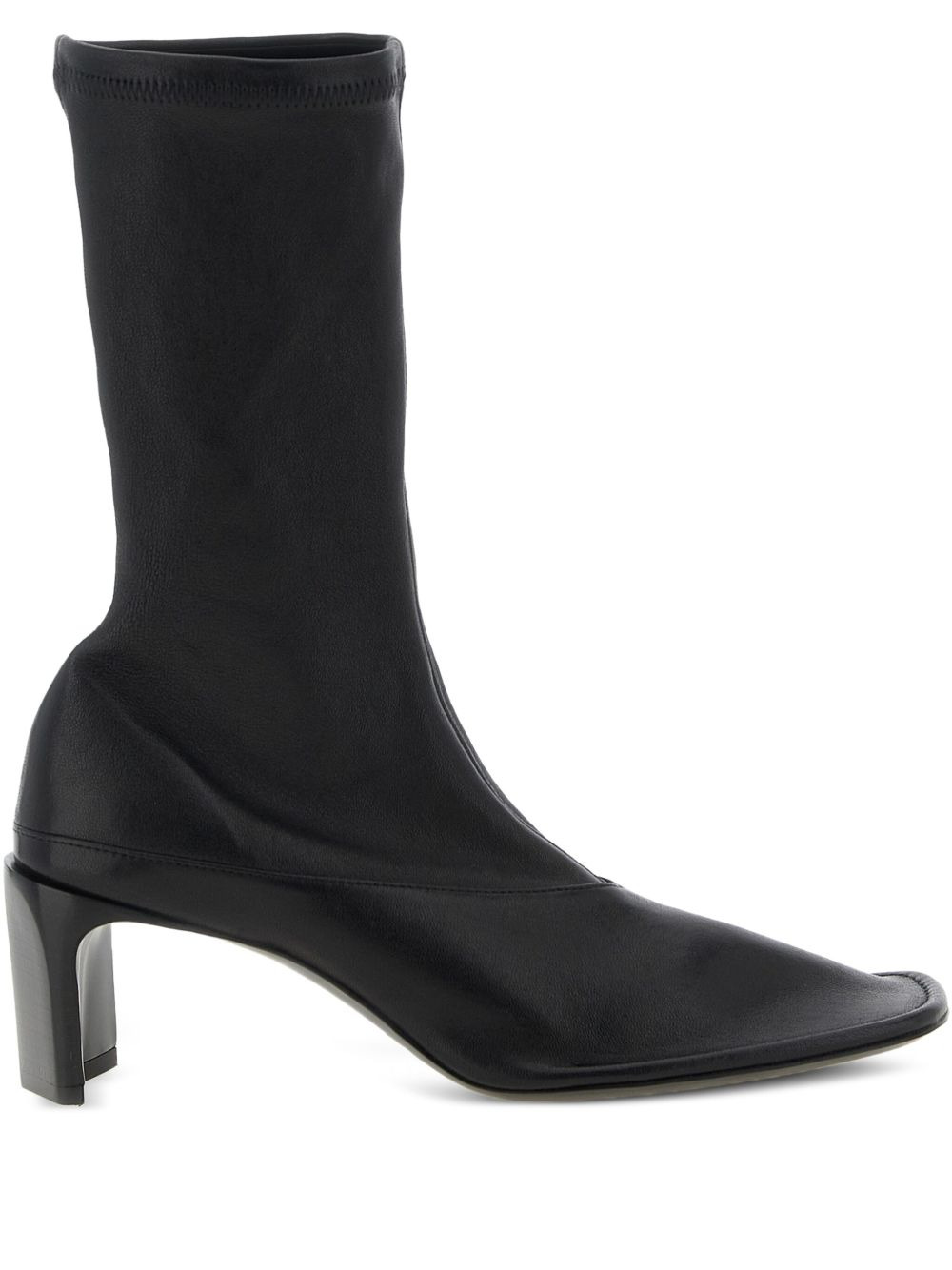 65mm leather boots Highlights - Black - Leather - Square toe - Sculptural heel - Leather sole Made in Italy Composition Lining: Calf Leather 100% Outer: Lamb Skin 100% Sole: Calf Leather 100% SIZE & FIT Measurement HEEL 2.55 in(6.5 cm)