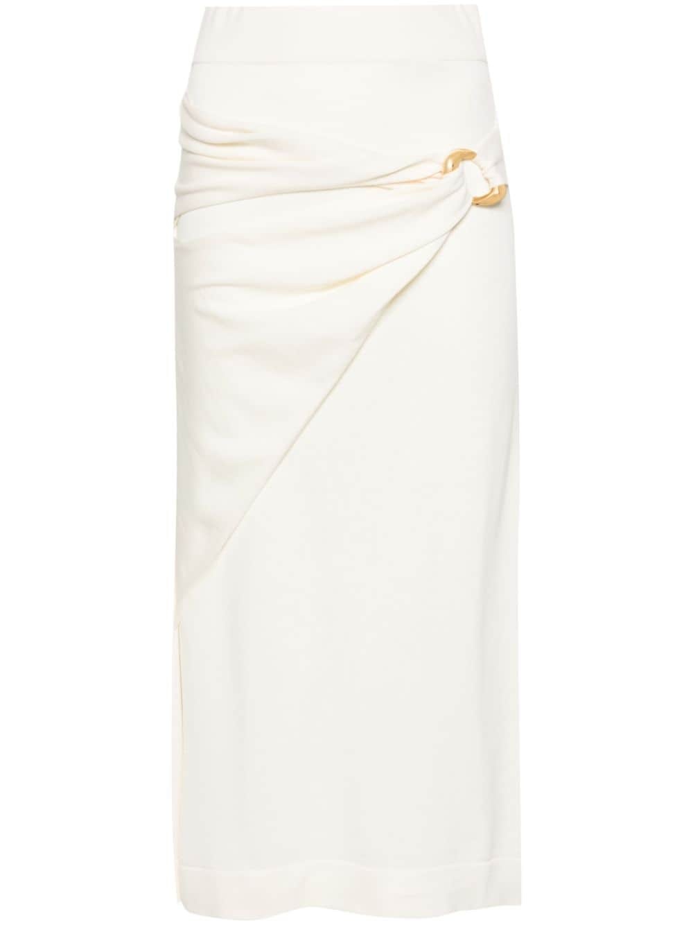 A-line fine-knit midi skirt Highlights - White - Virgin wool - Knitted construction - A-line - Ring hardware detailing - Draped panel detail - High-waisted - Elasticated waistband - Flared mid-length hem Made in Italy Composition Virgin Wool 100%