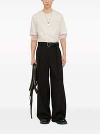 belted wide-leg wool trousers Highlights - Black - Wool - Pressed crease - Belted waist - Two side slit pockets - Two rear welt pockets Made in Italy Composition Wool 100% Washing instructions Read Manufacturer Guidelines