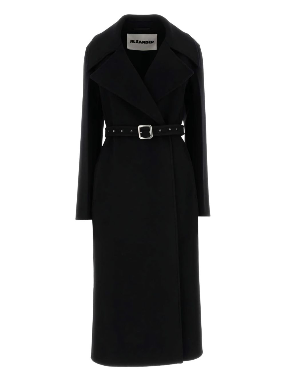 belted-wool coat Highlights - Black - Wool - Belted waist - Notched lapel - Long sleeves - Straight hem Made in Italy Composition Wool 100% Washing instructions Read Manufacturer Guidelines