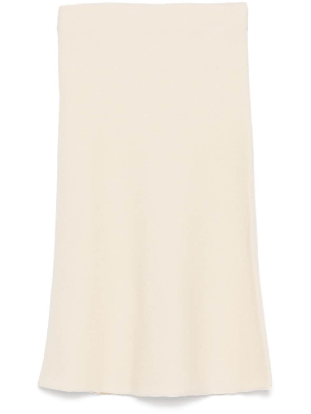boiled wool midi skirt Highlights - Cream white - Boiled wool - Knitted construction - Concealed rear zip fastening - A-line - Straight hem - Mid-length Made in Italy Composition Wool 100% SIZE & FIT Model measurements Height 5 ft 10 in(1.78 m) Bust/Chest 33.46 in(85 cm) Hips 36.22 in(92 cm) Waist 23.22 in(59 cm) FittingInformation This midi-length skirt is intended to be worn just below the waist Made with a midweight knit, this piece offers some stretch