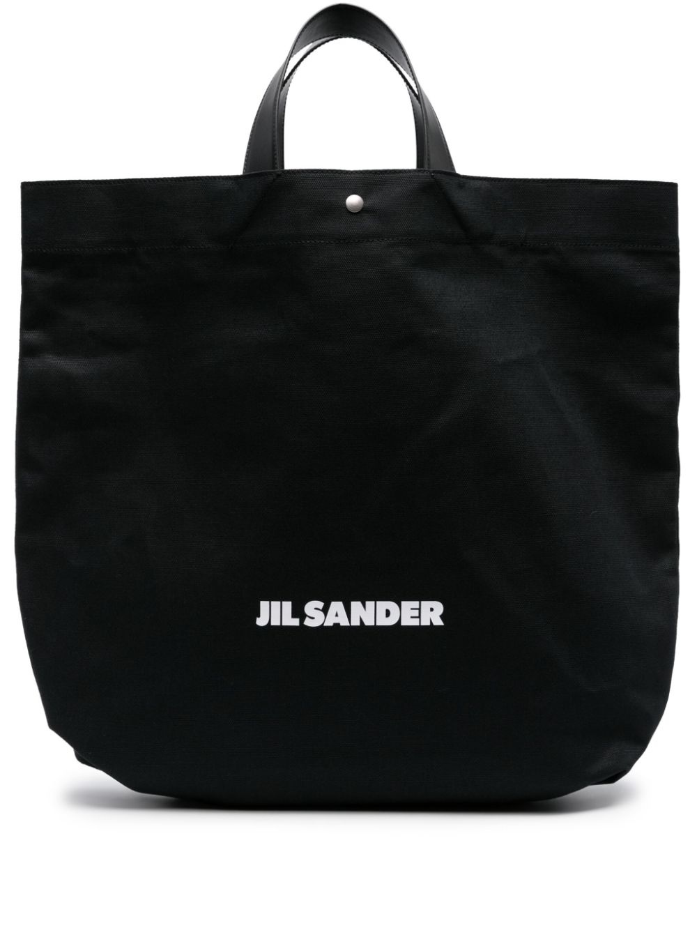 Book canvas tote bag Showing Jil Sander's focus on clean minimal styles, the Book tote bag has an all-black design enhanced with the brand's logo at the front. It’s crafted from a linen-cotton blend and anchored with two leather top handles. Highlights - Black - Cotton-linen blend - Canvas - Logo print to the front - Press-stud fastening - Two leather top handles - Main compartment - Three internal slip pockets - Debossed internal logo - Unlined - This piece comes complete with a protective dust bag. Made in Italy Composition Outer: Calf Leather 100%, Cotton 70%, Linen/Flax 30% SIZE & FIT Model measurements Height 5 ft 10 in(1.78 m) Bust/Chest 31.49 in(80 cm) Hips 37 in(94 cm) Waist 23.62 in(60 cm) Measurement DEPTH 3.93 in(10 cm) HANDLE 4.72 in(12 cm) HEIGHT 18.5 in(47 cm) WIDTH 20.47 in(52 cm)