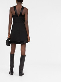 bow-detail mini dress black virgin wool blend bow detailing V-back sleeveless concealed side fastening flared skirt Made in Italy Composition Outer: Virgin Wool 100%, Acetate 100% Lining: Polyester 100%, Viscose 100% SIZE & FIT Model measurements Height 5 ft 11 in(1.8 m) Bust/Chest 32.67 in(83 cm) Hips 36.22 in(92 cm) Waist 24.4 in(62 cm) Measurement HIPS 39.37 in(100 cm) LENGTH 34.25 in(87 cm) WAIST 28.34 in(72 cm) FittingInformation This piece fits true to size. We recommend you get your regular size Designed for a close fit at the bust and waist, but loose at the hip Made with a mid-weight non-stretch fabric Washing instructions Dry Clean Only