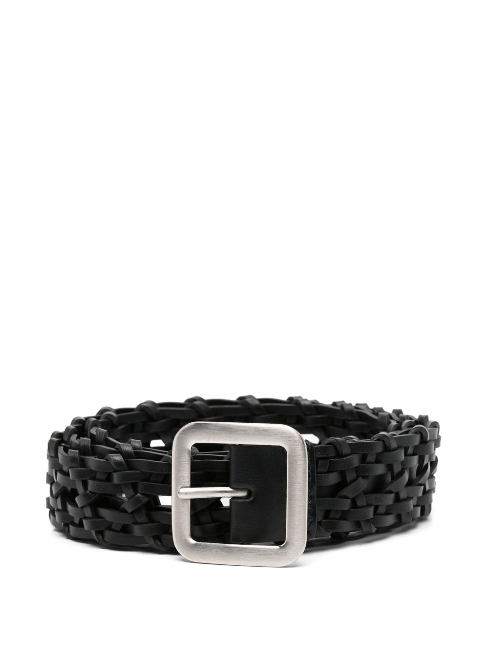 braided leather belt Highlights - Black - Buckle fastening - Interwoven design - Adjustable fit Made in Italy Composition CALFSKIN 100%, Brass 100% SIZE & FIT Measurement TOTAL LENGTH 51.18 in(130 cm) WIDTH 1.37 in(3.5 cm)