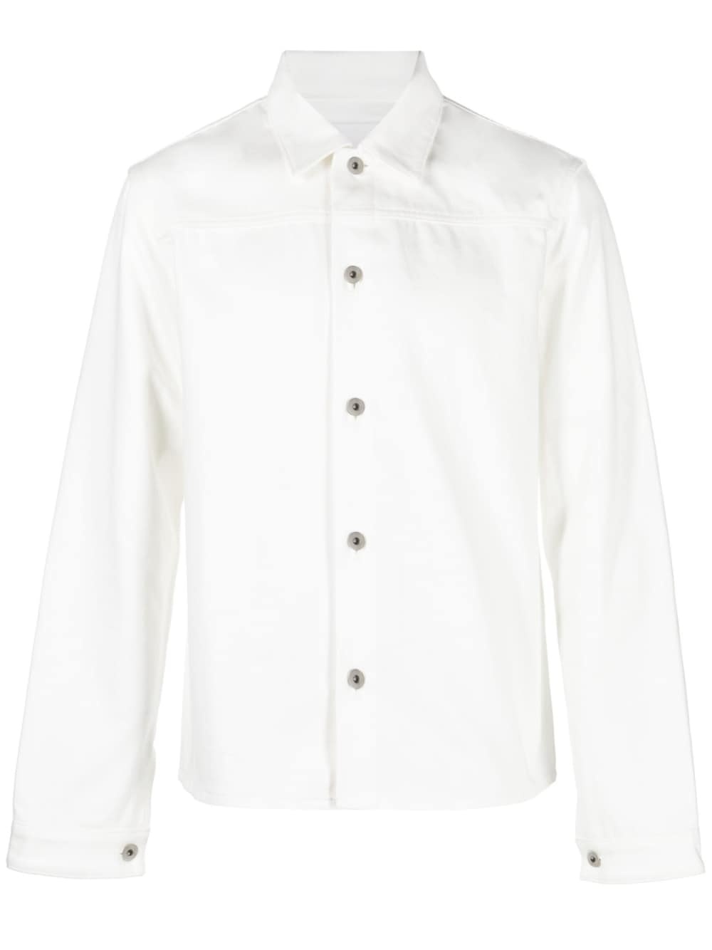 button-up denim shirt Highlights - White - Cotton - Tonal stitching - Classic collar - Front button fastening - Long sleeves - Buttoned cuffs - Straight hem Imported Composition Cotton 100% SIZE & FIT Model measurements Height 6 ft 2 in(1.87 m) Bust/Chest 36.22 in(92 cm) Hips 37 in(94 cm) Waist 27.95 in(71 cm) FittingInformation Designed for a regular fit, allowing for a comfortably loose fit throughout the body Made from a midweight non-stretch fabric This piece fits true to size – take your usual size Washing instructions Dry Clean Only