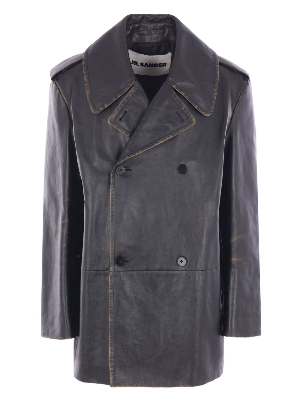 buttoned leather jacket Highlights - Black - Double-breasted - Button fastening - Epaulettes - Leather Made in Italy Composition Outer: Calf Leather 100% Lining: Viscose 100% Washing instructions Read Manufacturer Guidelines