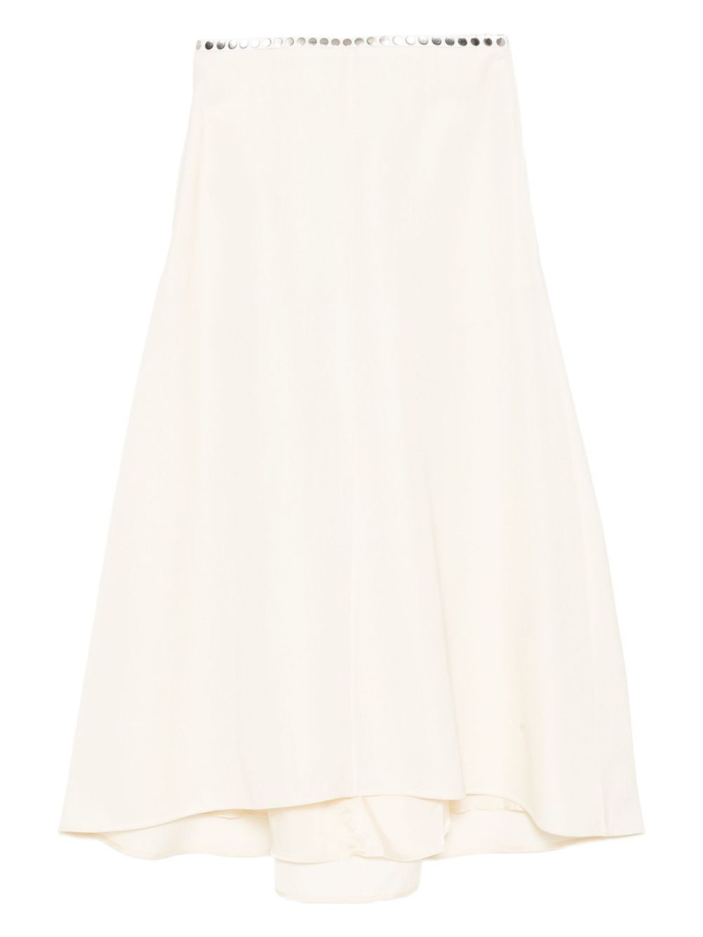 buttoned-waist skirt Highlights - Ivory - Rear button and zip fastening - Two side inset pockets Made In Italy Composition Lining: Viscose 95%, Elastane 5% Outer: Viscose 58%, Silk 42% SIZE & FIT Model measurements Height 5 ft 10 in(1.78 m) Bust/Chest 31.88 in(81 cm) Hips 37 in(94 cm) Waist 25.19 in(64 cm) FittingInformation Designed with an asymmetric hem, this skirt is intended to be worn just below the waist Made from a midweight non-stretch fabric