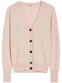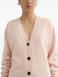 cashmere V-neck cardigan Highlights - Pink - Cashmere - Fine knit - V-neck - Front button fastening - Long sleeves - Ribbed cuffs and hem - Internal logo patch Made in Italy Composition Cashmere 100% SIZE & FIT FittingInformation Designed to be unstructured, offering a loose fit throughout The ribbed hem offers a close, comfortable fit Made with a midweight knit, this piece offers some stretch