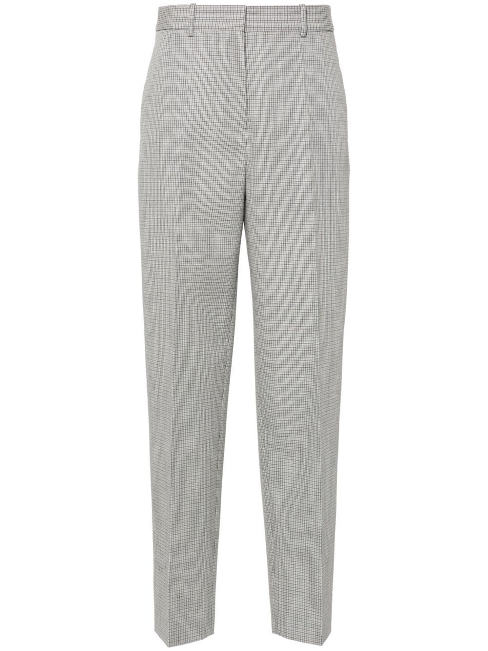 checked tailored trousers Highlights - Light grey - Virgin wool - Interwoven design - Check pattern - Concealed front button, hook and zip fastening - Belt loops - Pressed crease - Tapered leg - Two side slit pockets - Two rear welt pockets Made in Italy Composition Lining: Cotton 100% Outer: Virgin Wool 100% SIZE & FIT Model measurements Height 5 ft 10 in(1.77 m) Bust/Chest 34.64 in(88 cm) Hips 35.43 in(90 cm) Waist 24.8 in(63 cm) FittingInformation Designed for a straight-leg fit, these trousers allow for a close fit at the waist and an unrestricted, comfortable fit over the leg Made from a midweight non-stretch fabric This piece fits true to size – take your usual size