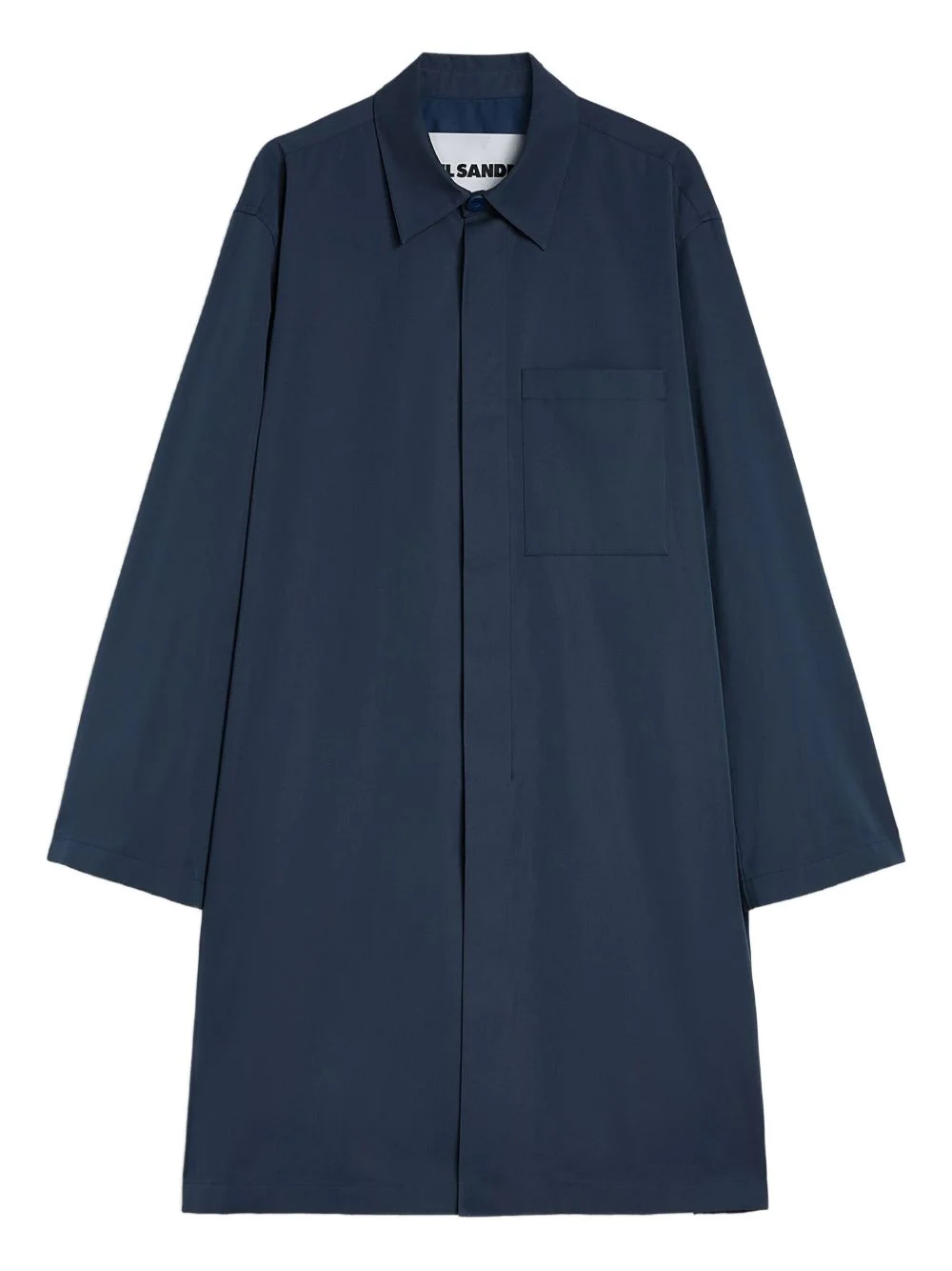 chest pocket poplin coat Highlights - Dark blue - Pointed collar - Button closure - Chest pocket - Straight hem - Classic yoke Made in Italy Composition Cotton 86%, Silk 14%
