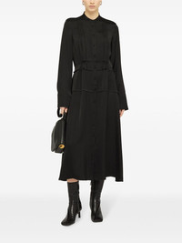 collarless midi dress Highlights - Black - Collarless - Front button fastening - Long sleeves - Flared hem - Mid-length Made in Italy Composition Viscose 100%