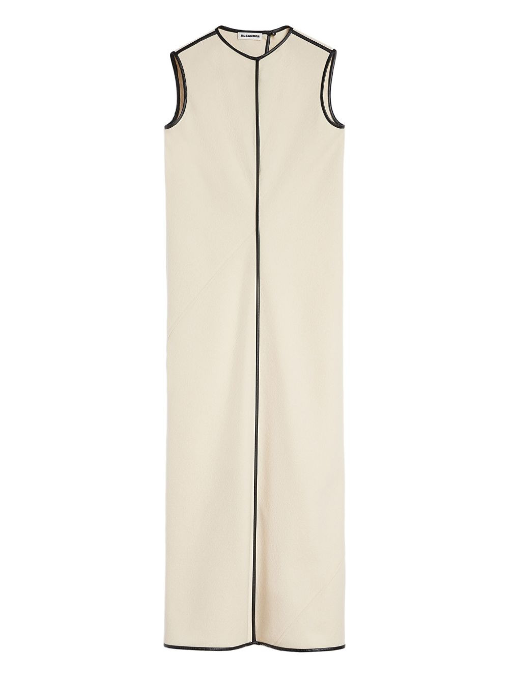 contrasting-trim maxi dress Highlights - Light beige - Single rear button fastening - Rear slit - Crew neck - Keyhole detail to the rear Made in Italy Composition Wool 100% Washing instructions Read Manufacturer Guidelines