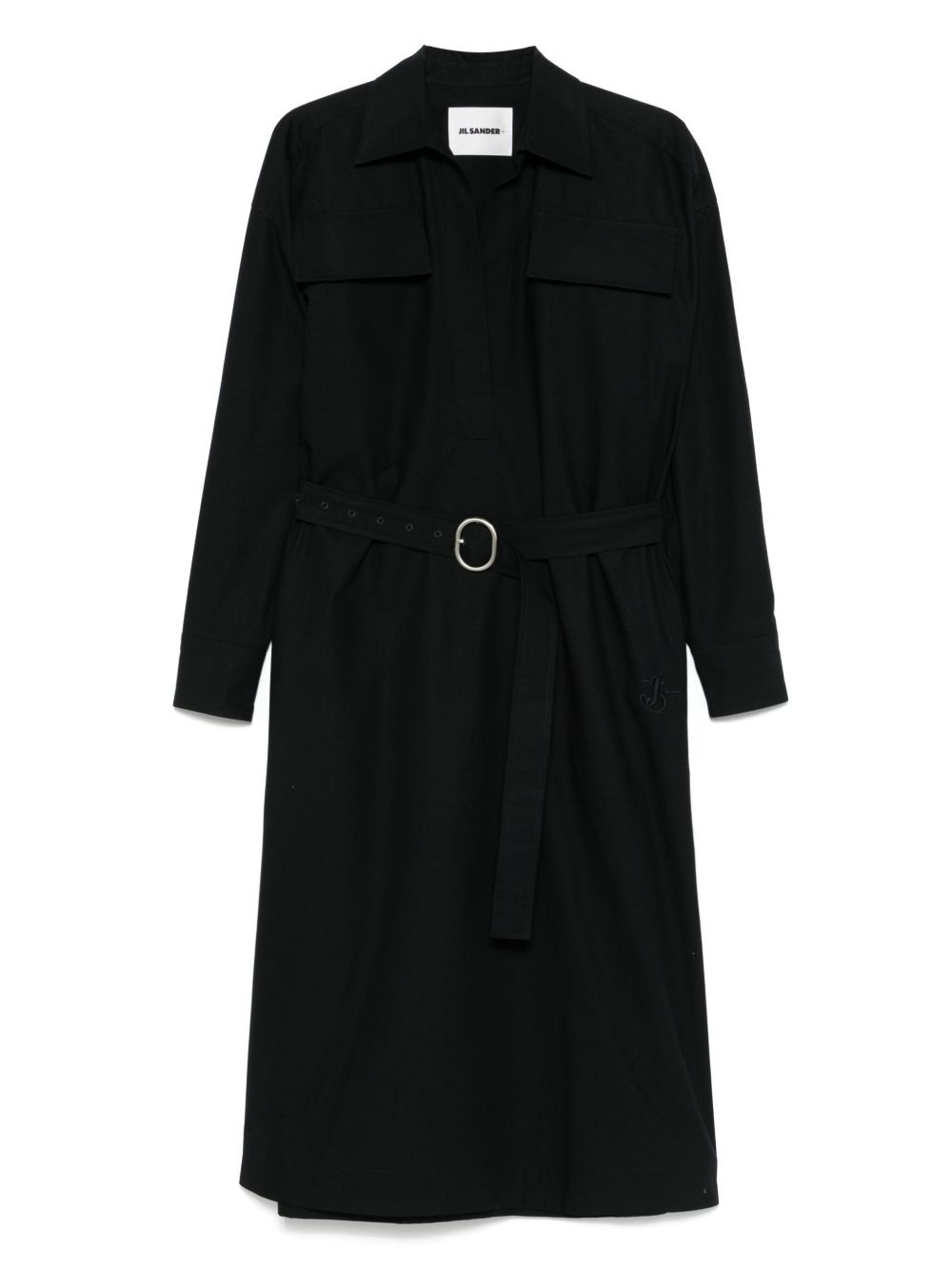 cotton midi dress Highlights - Navy blue - V-neck - Belted waist - Long sleeves Made in Italy Composition Cotton 100% SIZE & FIT Model measurements Height 5 ft 10 in(1.79 m) Bust/Chest 33.07 in(84 cm) Hips 35.82 in(91 cm) Waist 24.01 in(61 cm) FittingInformation Designed to be unstructured, offering a loose fit throughout The belt offers adjustability for fitted preferences Made from a midweight non-stretch fabric
