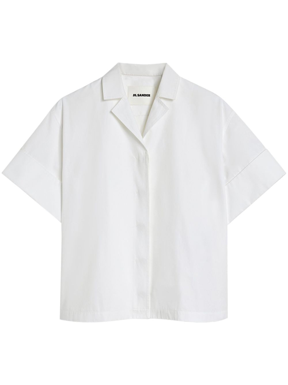 cotton shirt Highlights - White - Cotton - Concealed front fastening - Notched collar - Short sleeves - Pleat detailing Made in Italy Composition Cotton 100% SIZE & FIT FittingInformation Designed to be unstructured, offering a loose fit throughout Made from a midweight non-stretch fabric Measurement SLEEVE LENGTH 8.5 in(21.6 cm) LENGTH 24.01 in(61 cm) WAIST 42 in(106.7 cm) BUST 44.01 in(111.8 cm)