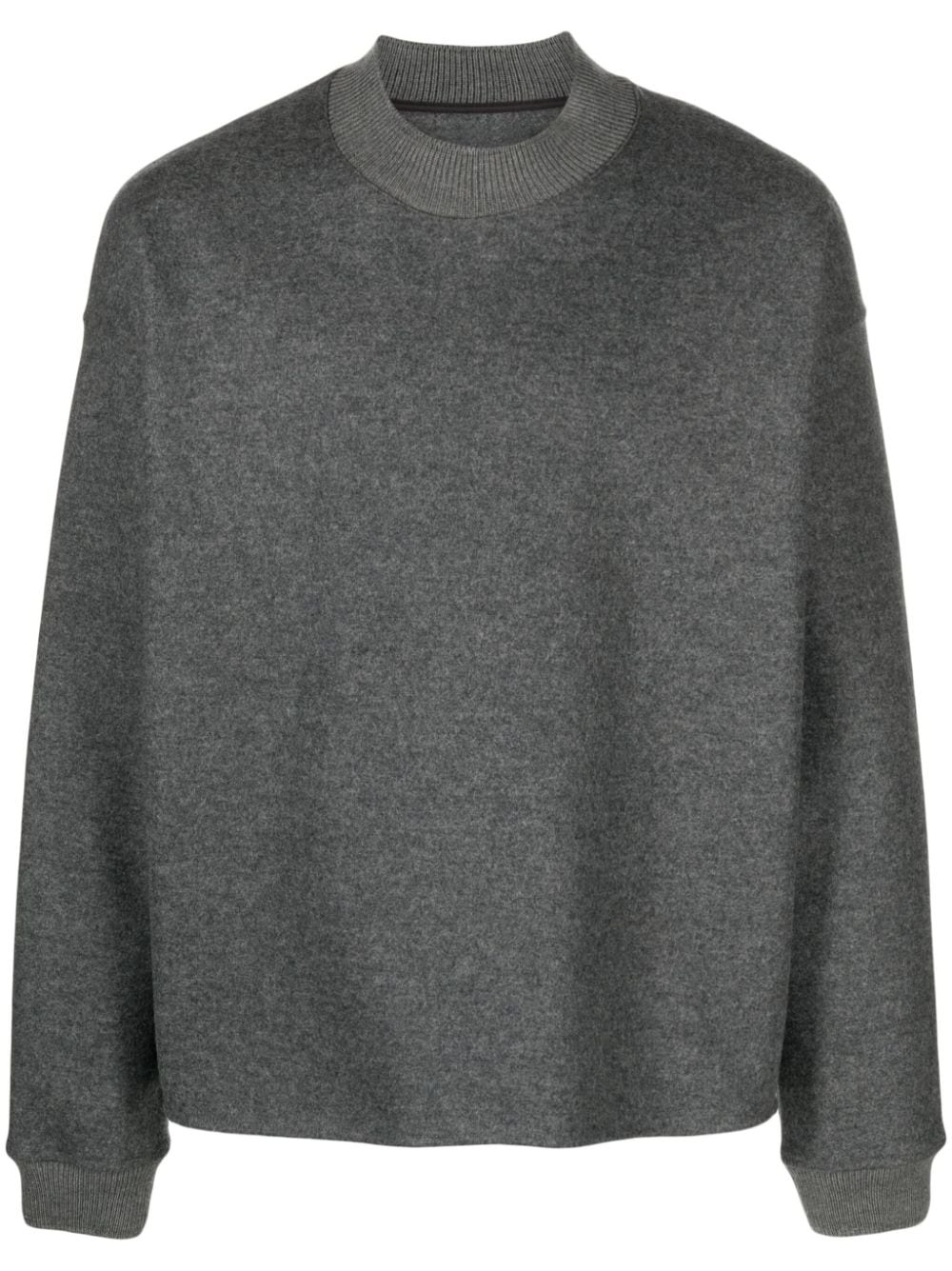 crew-neck felted-wool jumper Highlights - Ash grey - Wool - Felted finish - Mock neck - Drop shoulder - Long sleeves - Ribbed cuffs - Straight hem Made in Italy Composition Outer: Wool 100% Lining: Viscose 100% SIZE & FIT Model measurements Height 6 ft 1 in(1.86 m) Bust/Chest 37.4 in(95 cm) Hips 36.22 in(92 cm) Waist 29.52 in(75 cm) Measurement CHEST 43.3 in(110 cm) SLEEVE LENGTH 27.55 in(70 cm) LENGTH 29.13 in(74 cm) Shoulder Width 19.68 in(50 cm) FittingInformation Designed to be unstructured, offering a loose fit throughout Made with a midweight knit, this piece offers some stretch This piece fits true to size – take your usual size Washing instructions Dry Clean Only