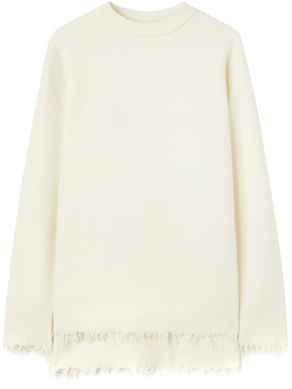 crew-neck jumper Highlights - White - Wool-silk blend - Knitted construction - Distressed finish - Crew neck - Long sleeves - Fringed edge Made In Italy Composition Wool 76%, Silk 24% SIZE & FIT FittingInformation Designed for an oversized fit, offering additional room throughout Made with a midweight knit, this piece offers some stretch