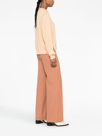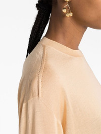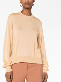 crew-neck long-sleeve sweater This neutral Jil Sander sweater channels the brand's minimalist aesthetic with its simple silhouette and soft colour palette. It's crafted from a blend of cashmere, silk and virgin wool to a relaxed shape with a crew neck and long sleeves. Highlights - Salmon pink - Fine knit - Perforated detailing - Crew neck - Drop shoulder - Extra-long sleeves - Straight hem - Ribbed cuffs and hem - Short side slits Made in Italy Composition Virgin Wool 35%, Cashmere 35%, Silk 30% SIZE & FIT Model measurements Height 5 ft 11 in(1.8 m) Bust/Chest 31.49 in(80 cm) Hips 35.82 in(91 cm) Waist 24.8 in(63 cm) FittingInformation Designed for a relaxed fit, this piece allows for comfort and movement when worn Made with a lightweight knit, this piece offers some stretch This piece fits true to size – take your usual size Washing instructions Dry Clean Only