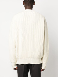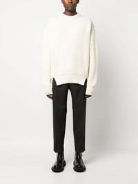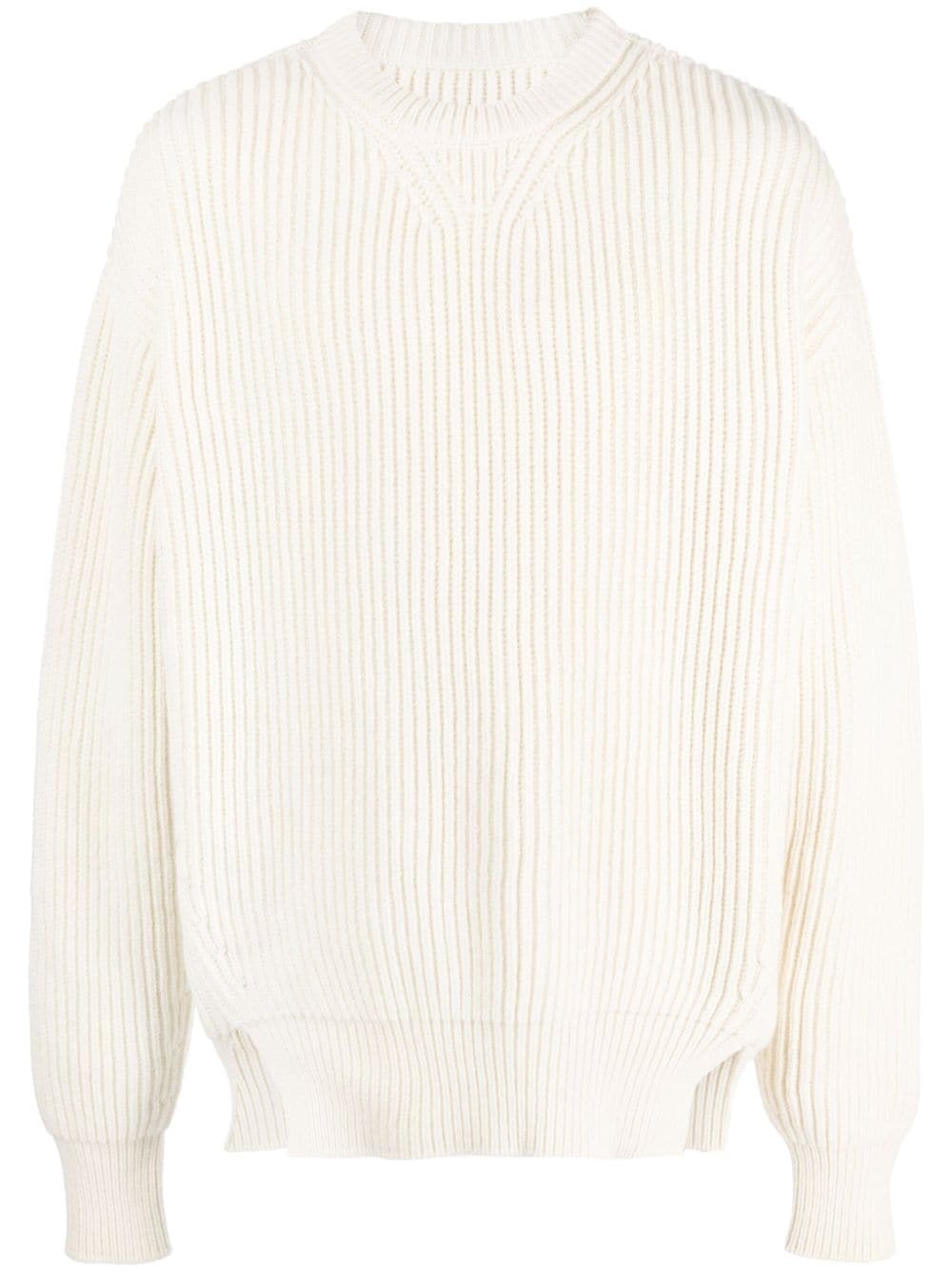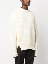 crew-neck ribbed-knit wool jumper Highlights - Off-white - Wool - Chunky ribbed knit - Crew neck - Long sleeves - High-low hem - Short side slits Made in Italy Composition Wool 100% SIZE & FIT Model measurements Height 6 ft 2 in(1.88 m) Bust/Chest 36.61 in(93 cm) Hips 35.82 in(91 cm) Waist 27.95 in(71 cm) FittingInformation Designed for an oversized fit, offering additional room throughout Made from a heavyweight non-stretch fabric This piece fits true to size – take your usual size Washing instructions Dry Clean Only