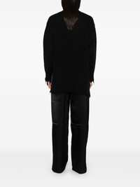 crew-neck sweater Highlights - Black - Wool blend - Knitted construction - Crew neck - Drop shoulder - Long sleeves - Frayed cuffs - Side slits - High-low hem - Frayed hem Made in Italy Composition Wool 83%, Viscose 9%, Silk 8% SIZE & FIT Model measurements Height 5 ft 11 in(1.8 m) Bust/Chest 33.07 in(84 cm) Hips 37.4 in(95 cm) Waist 25.19 in(64 cm) Measurement BUST 43.3 in(110 cm) LENGTH 30.7 in(78 cm) WAIST 42.51 in(108 cm) SLEEVE LENGTH 20.07 in(51 cm) Shoulder Width 21.65 in(55 cm) FittingInformation Designed to be unstructured, offering a loose fit throughout Made with a midweight knit, this piece offers some stretch