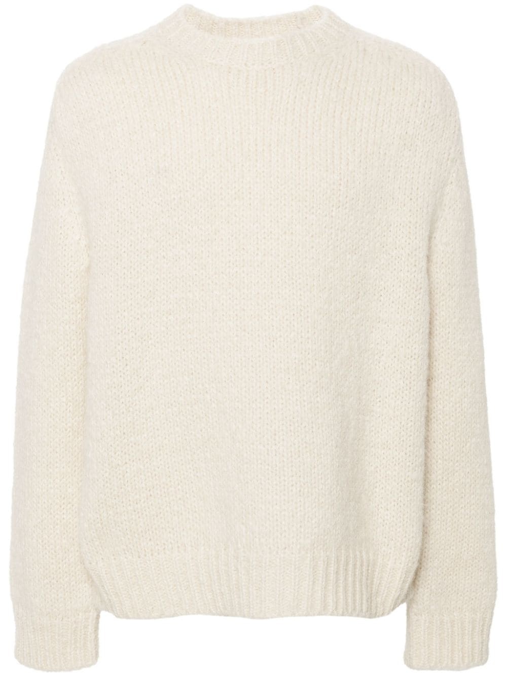 crew-neck sweater Highlights - White - Knitted construction - Brushed effect - Crew neck - Long sleeves - Ribbed cuffs and hem Made in Italy Composition Alpaca Wool 43%, Mohair 43%, Polyamide 14% SIZE & FIT Model measurements Height 6 ft 1 in(1.85 m) Bust/Chest 35.82 in(91 cm) Hips 37.79 in(96 cm) Waist 29.13 in(74 cm) FittingInformation Designed to be unstructured, offering a loose fit throughout The ribbed hem offers a close, comfortable fit Made with a midweight knit, this piece offers some stretch This piece fits true to size – take your usual size
