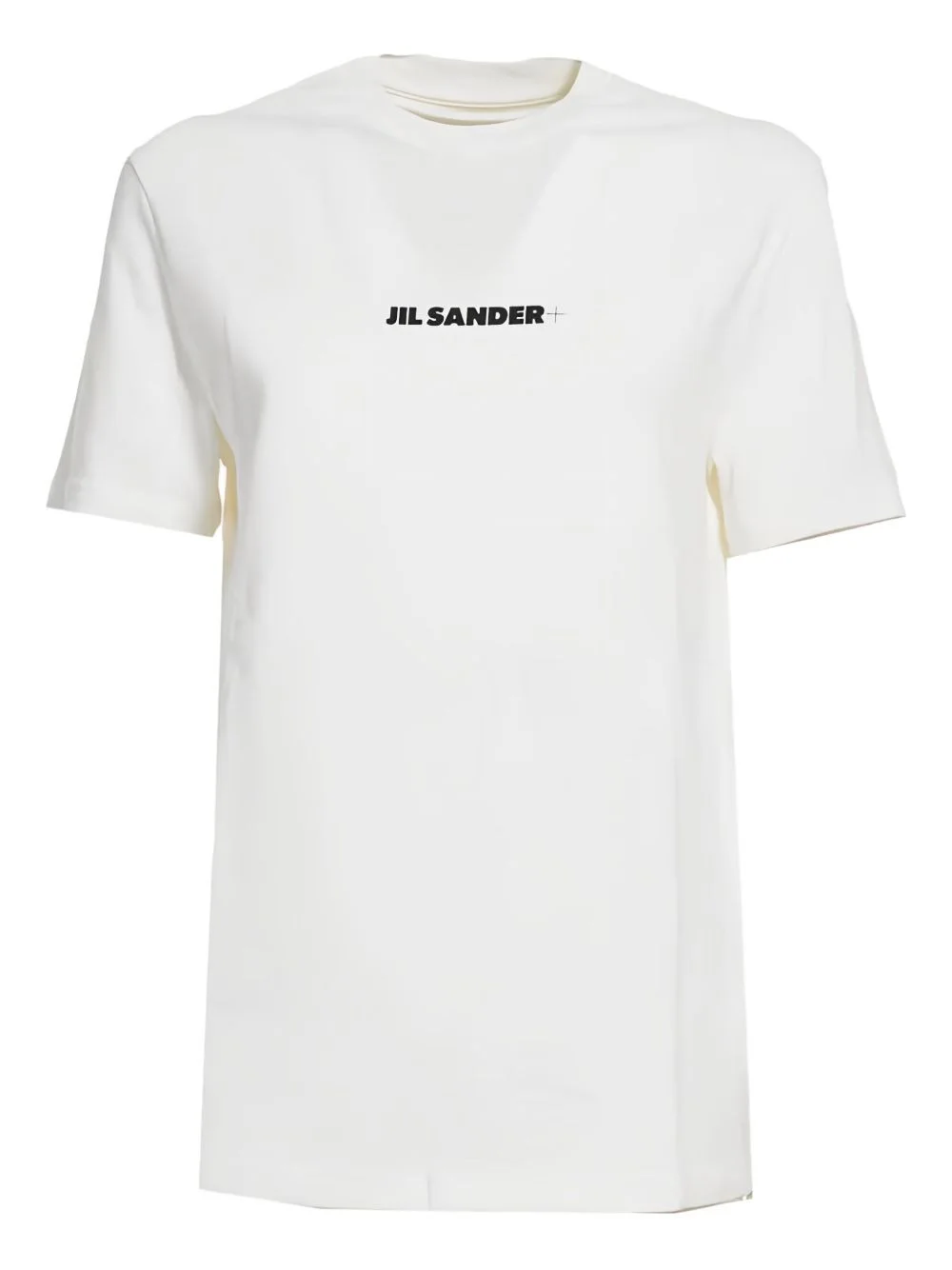 crew-neck T-shirt Jil Sander’s minimalist aesthetic is illustrated with this white cotton T-shirt. It’s simply detailed with a small contrasting logo print at the chest. Highlights - Beige - Crew neck - Logo print - Short sleeves - Straight hem - Cotton Made in Italy Composition Cotton 100%