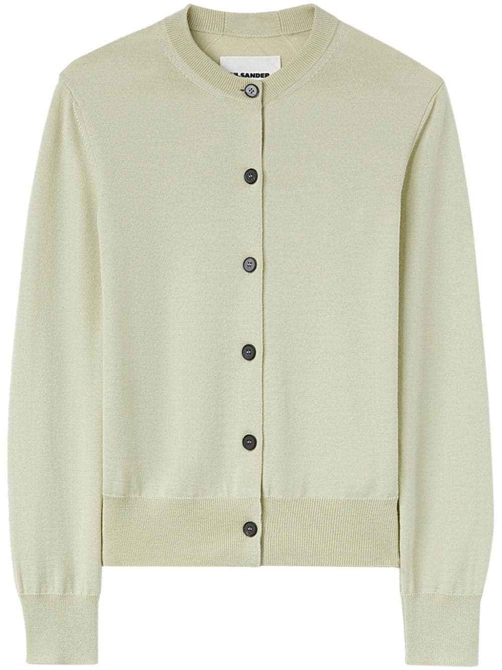 crew-neck wool cardigan Highlights - White - Wool - Crew neck - Front button fastening - Long sleeves - Ribbed cuffs and hem - Straight hem Made in Italy Composition Wool 100% SIZE & FIT FittingInformation Designed for a relaxed fit, this piece allows for comfort and movement when worn Made with a midweight knit, this piece offers some stretch This piece fits true to size – take your usual size Washing instructions Read Manufacturer Guidelines