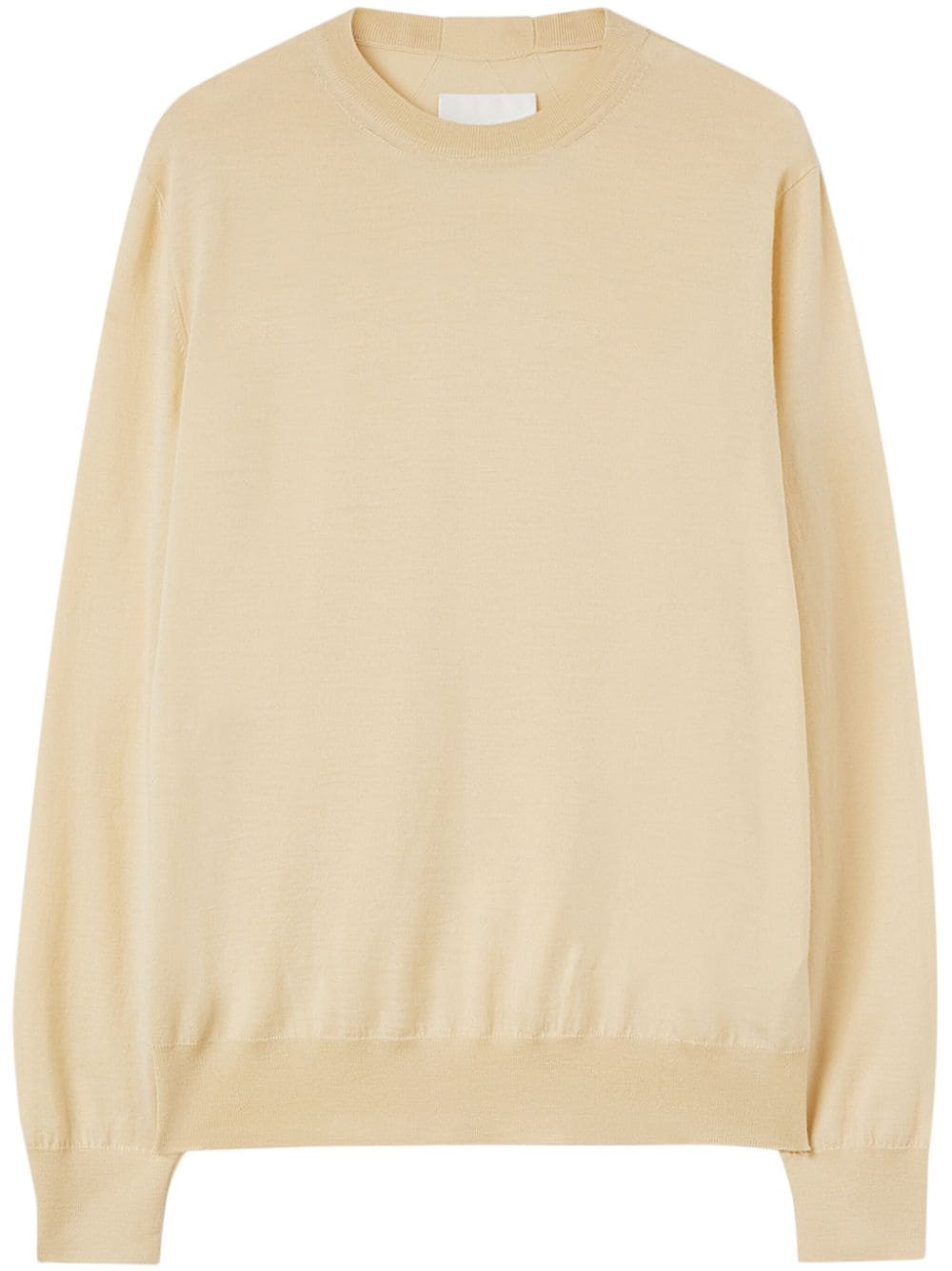 crew-neck wool jumper Highlights - Light beige - Wool - Fine knit - Crew neck - Long sleeves - Ribbed cuffs and hem Made in Italy Composition Wool 100% SIZE & FIT FittingInformation Designed to be unstructured, offering a loose fit throughout Made with a lightweight knit, this piece offers some stretch This piece fits true to size – take your usual size Washing instructions Read Manufacturer Guidelines