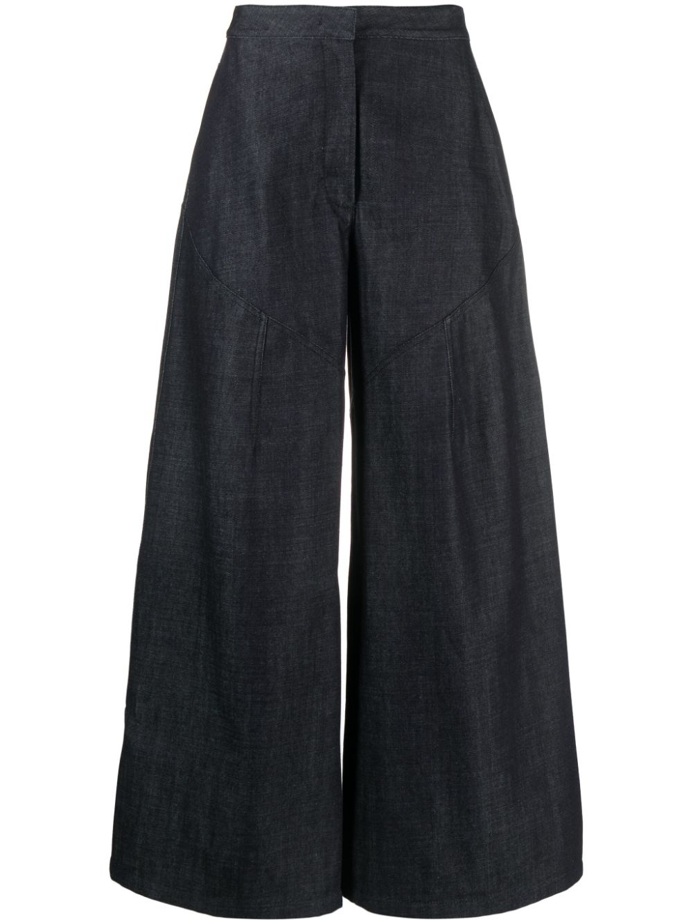 cropped wide-leg trousers Highlights - Indigo blue - Cotton - Mid-rise - Wide leg - Cropped leg - Concealed front fastening - Two rear welt pockets Made in Italy Composition Outer: Cotton 100% Lining: Cotton 100% SIZE & FIT Model measurements Height 5 ft 9 in(1.76 m) Bust/Chest 33.07 in(84 cm) Hips 38.58 in(98 cm) Waist 24.8 in(63 cm) FittingInformation Designed with a wide-leg cut, these trousers allow for a close fit at the waist and offer a loose and roomy fit over the leg Sturdy and hard-wearing, this denim piece offers no stretch This piece fits true to size – take your usual size Washing instructions Machine Wash