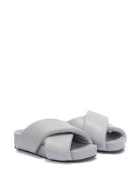 cross-over leather sandals These sandals speak to Jil Sander's preference for minimalism. Crafted from smooth leather, they feature a crossover construction. Highlights - Grey - Calf leather - Crossover strap detail - Open toe - Flat rubber sole - Slip-on style Made in Italy Composition Outer: Ovine Leather (top grain) 100% Lining: Ovine Leather (top grain) 100% Sole: Calf Leather 100%