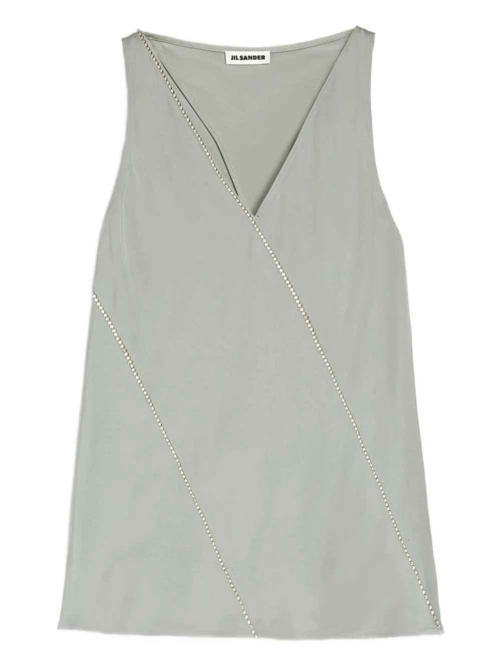 crystal-embellished V-neck top Highlights - Light green - Diagonal seams - Crystal embellishment - V-neck - Sleeveless - Side slits Made in Italy Composition Viscose 100% Washing instructions Read Manufacturer Guidelines