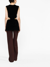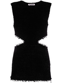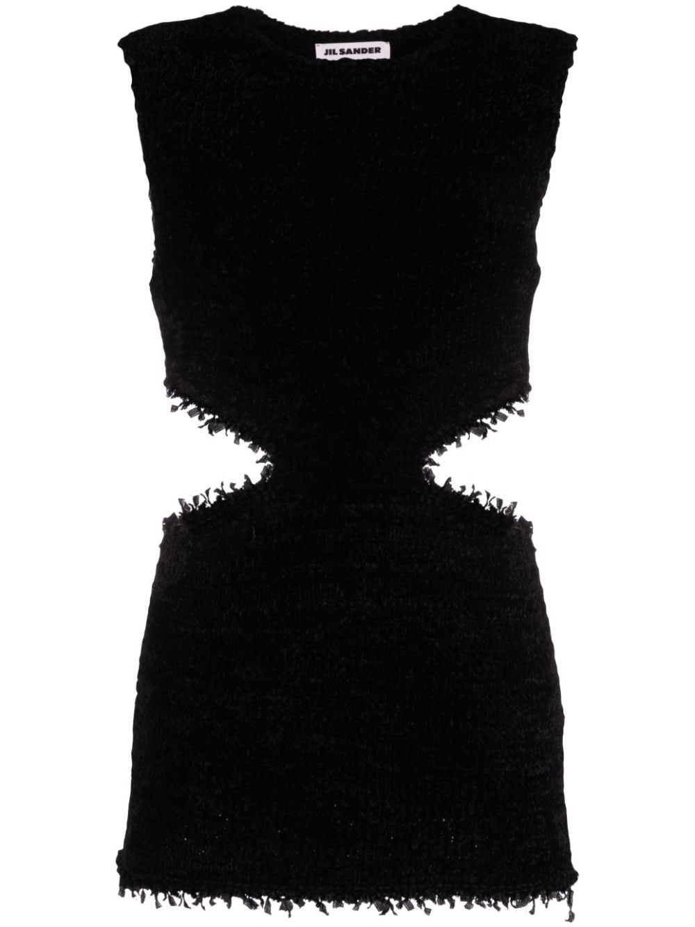 cut-out dress The simple silhouette of this black dress from Jil Sander is elevated by impactful detailing and tactile elements. Circular cut-outs detail the sides while subtly frayed trims add visual interest. Highlights - Black - Round neck - Sleeveless - Cut-out detailing Made in Italy Composition Silk 69%, Cotton 31% SIZE & FIT Model measurements Height 5 ft 10 in(1.78 m) Bust/Chest 30.7 in(78 cm) Hips 34.64 in(88 cm) Waist 23.22 in(59 cm) FittingInformation Designed for a slim fit that sits just away from the body offering a close yet comfortable fit Made with a midweight knit, this piece offers some stretch This piece fits true to size – take your usual size