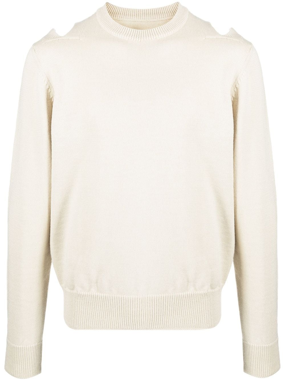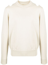 cut-out wool jumper Highlights - Off-white - Wool - Knitted construction - Cut-out detailing - Ribbed crew neck - Long sleeves - Ribbed cuffs and hem - Straight hem Made in Italy Composition Wool 100% SIZE & FIT Model measurements Height 6 ft 2 in(1.88 m) Bust/Chest 37.79 in(96 cm) Hips 35.82 in(91 cm) Waist 29.92 in(76 cm) FittingInformation Designed for a relaxed fit, this piece allows for comfort and movement when worn The ribbed hem offers a close, comfortable fit Made with a midweight knit, this piece offers some stretch This piece fits true to size – take your usual size