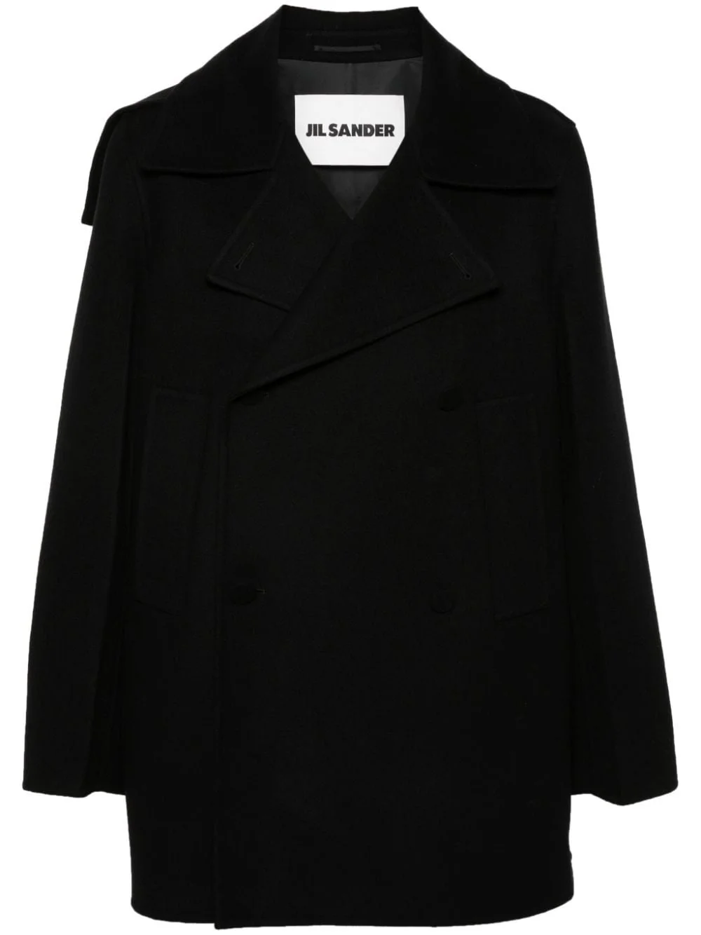 double-breasted coat Highlights - Black - Virgin wool blend - Non-brushed fleece - Vertical seamed - Wide notch lapels - Double-breasted button fastening - Long sleeves - Two side welt pockets - Straight hem - Full lining - Above-knee length Made in Italy Composition Outer: Virgin Wool 90%, Wool 10% Lining: Viscose 100% SIZE & FIT Model measurements Height 6 ft 2 in(1.88 m) Bust/Chest 36.61 in(93 cm) Hips 35.82 in(91 cm) Waist 27.95 in(71 cm) FittingInformation Designed to be unstructured, offering a loose fit throughout Made from a midweight non-stretch fabric This piece fits true to size – take your usual size Washing instructions Dry Clean Only