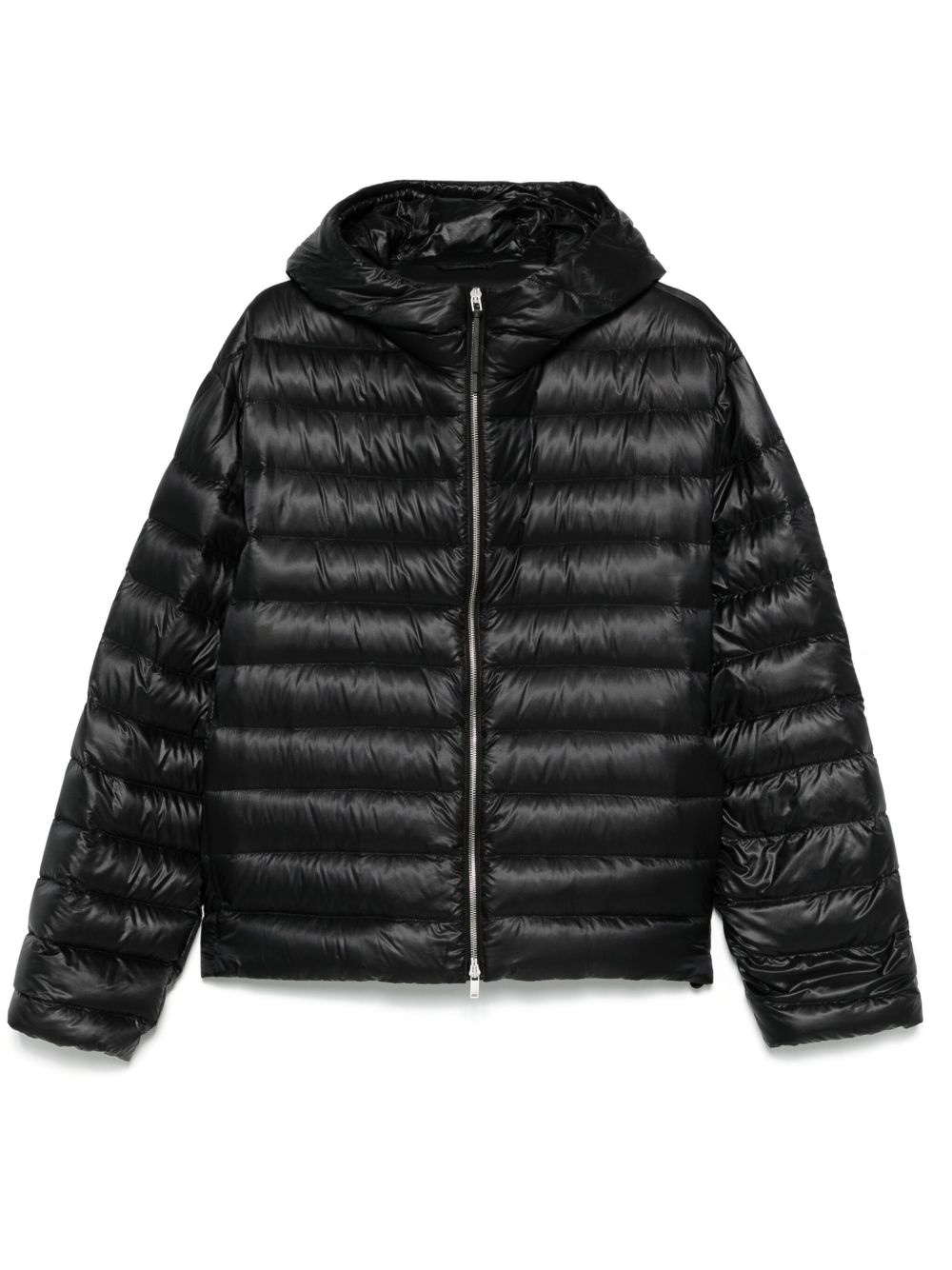 down jacket Highlights - Black - Front two-way zip fastening - Classic hood - Elasticated cuffs - Two side zip-fastening pockets Made in Italy Composition Outer: Polyamide 100%, Lambskin 100% Lining: Polyester 100%, Goose Down 85%, Goose Feather 15% SIZE & FIT Model measurements Height 6 ft 0 in(1.84 m) Bust/Chest 35.82 in(91 cm) Hips 37 in(94 cm) Waist 28.34 in(72 cm) FittingInformation Designed for a regular fit, allowing for a comfortably loose fit throughout the body The adjustable drawstring means that you can adjust this piece’s fit to suit your comfort and preference Made from a padded non-stretch fabric, giving it no natural elasticity