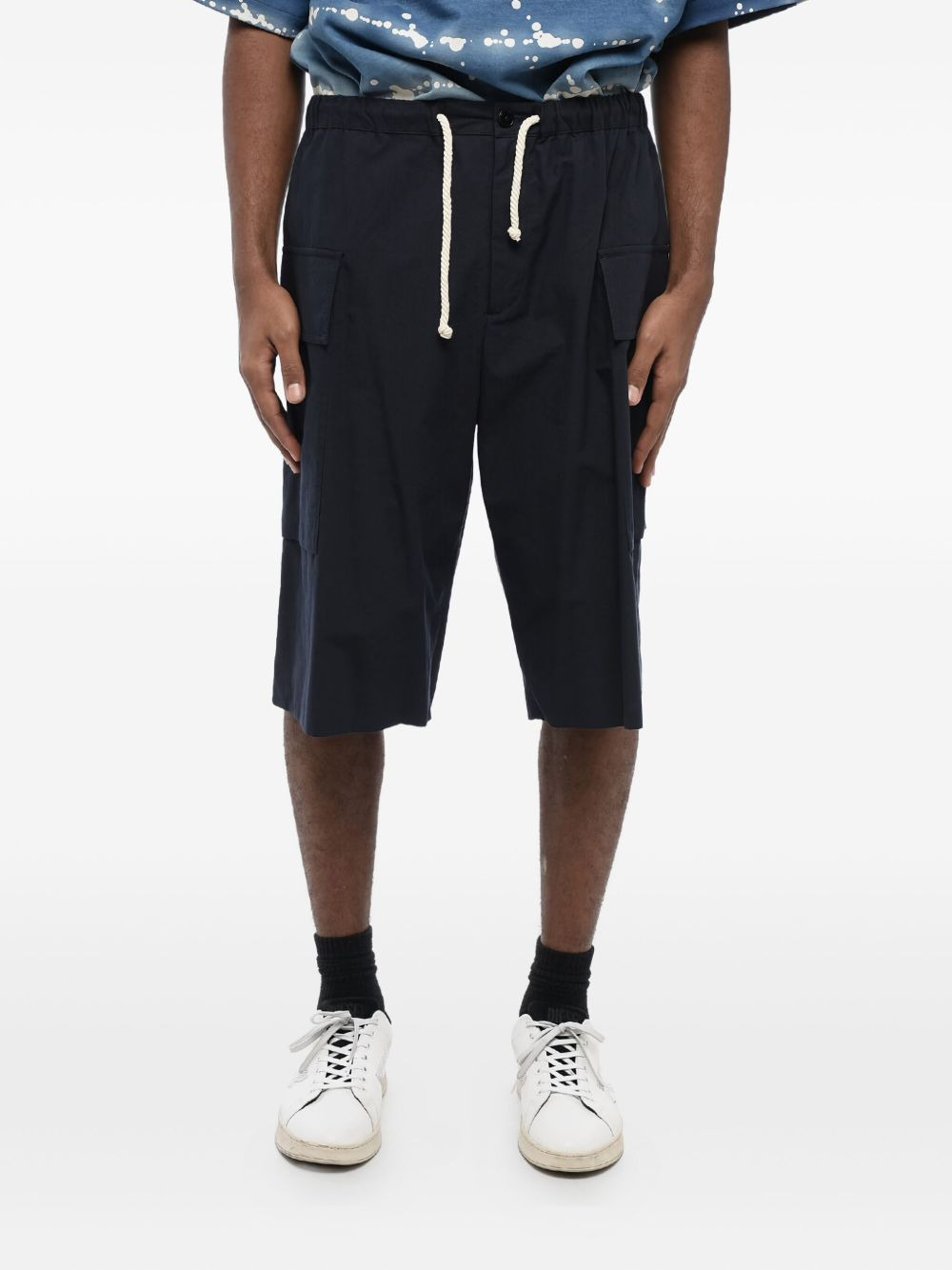 drawstring cargo shorts Highlights - Black - Multiple pockets - Drawstring fastening - Flat front - Button closure - Zip fly Made in Italy Composition Cotton 100%