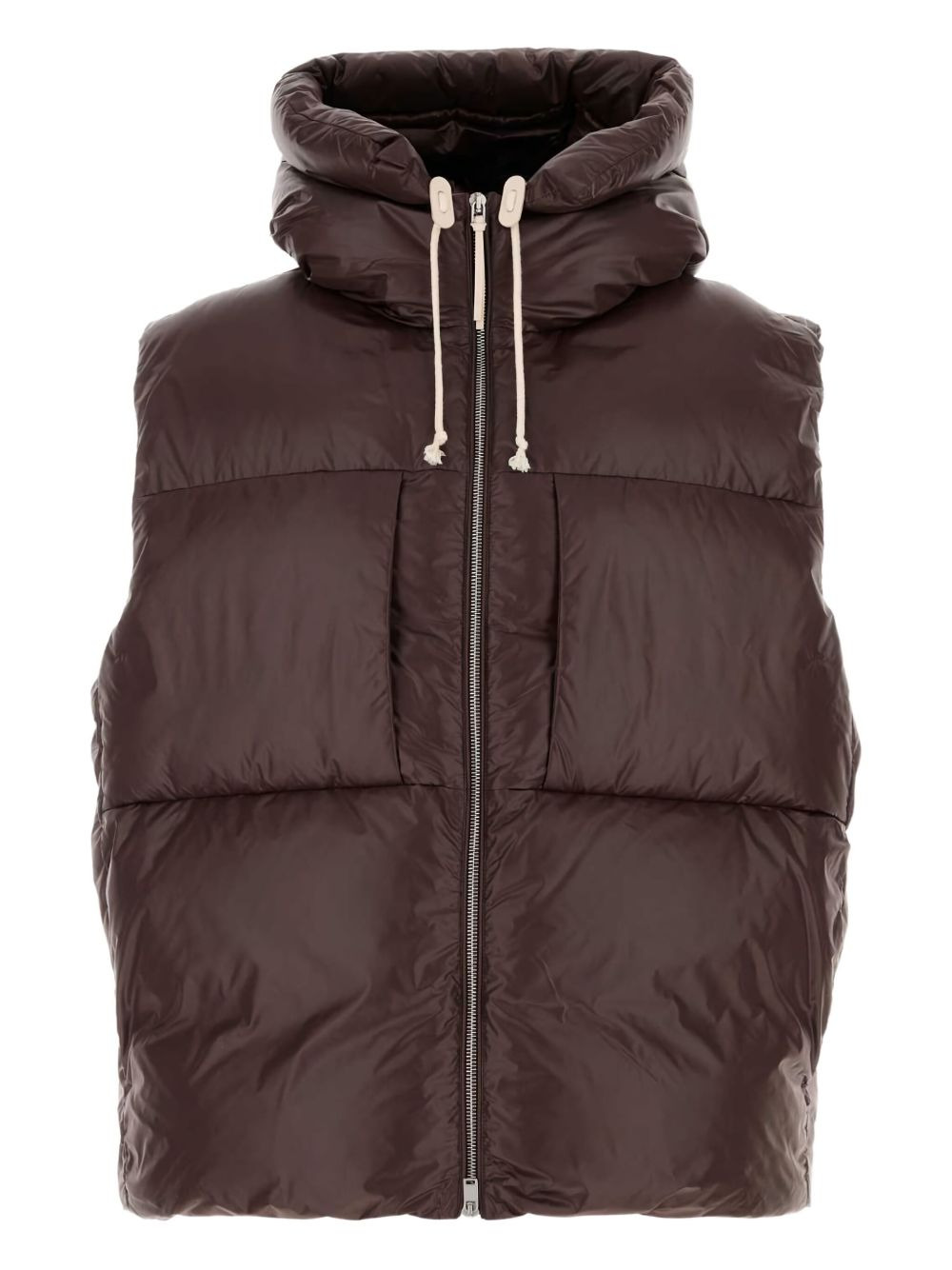 drawstring-hood gilet Highlights - Brown - Zip fastening - Sleeveless - Drawstring hood Imported Composition Outer: Nylon 100% Lining: Nylon 100% Filling: Down 85%, Feather 15% Washing instructions Read Manufacturer Guidelines