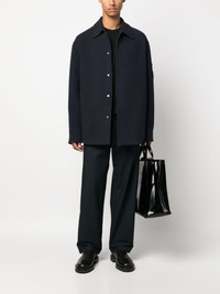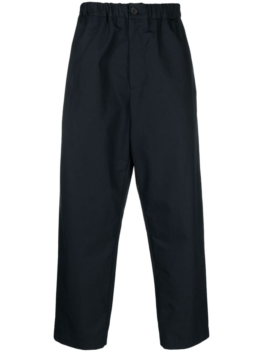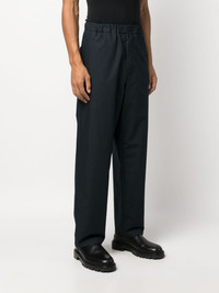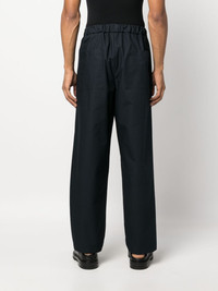 elasticated straight-leg trousers Highlights - Midnight blue - Cotton - Elasticated waistband - Front button and zip fastening - Straight leg - Two side inset pockets - Two rear patch pockets Made in Italy Composition Lining: Cotton 100% Outer: Cotton 100% SIZE & FIT Model measurements Height 6 ft 2 in(1.87 m) Bust/Chest 38.18 in(97 cm) Hips 36.61 in(93 cm) Waist 29.13 in(74 cm) Measurement FRONT RISE 13.18 in(33.5 cm) INSIDE LEG 29.92 in(76 cm) HIPS 47 in(119.4 cm) FittingInformation Designed for a straight-leg, allowing for an unrestricted and comfortable fit over the leg The elasticated waist allows for a comfortable fit Made from a midweight non-stretch fabric This piece fits true to size – take your usual size Washing instructions Dry Clean Only