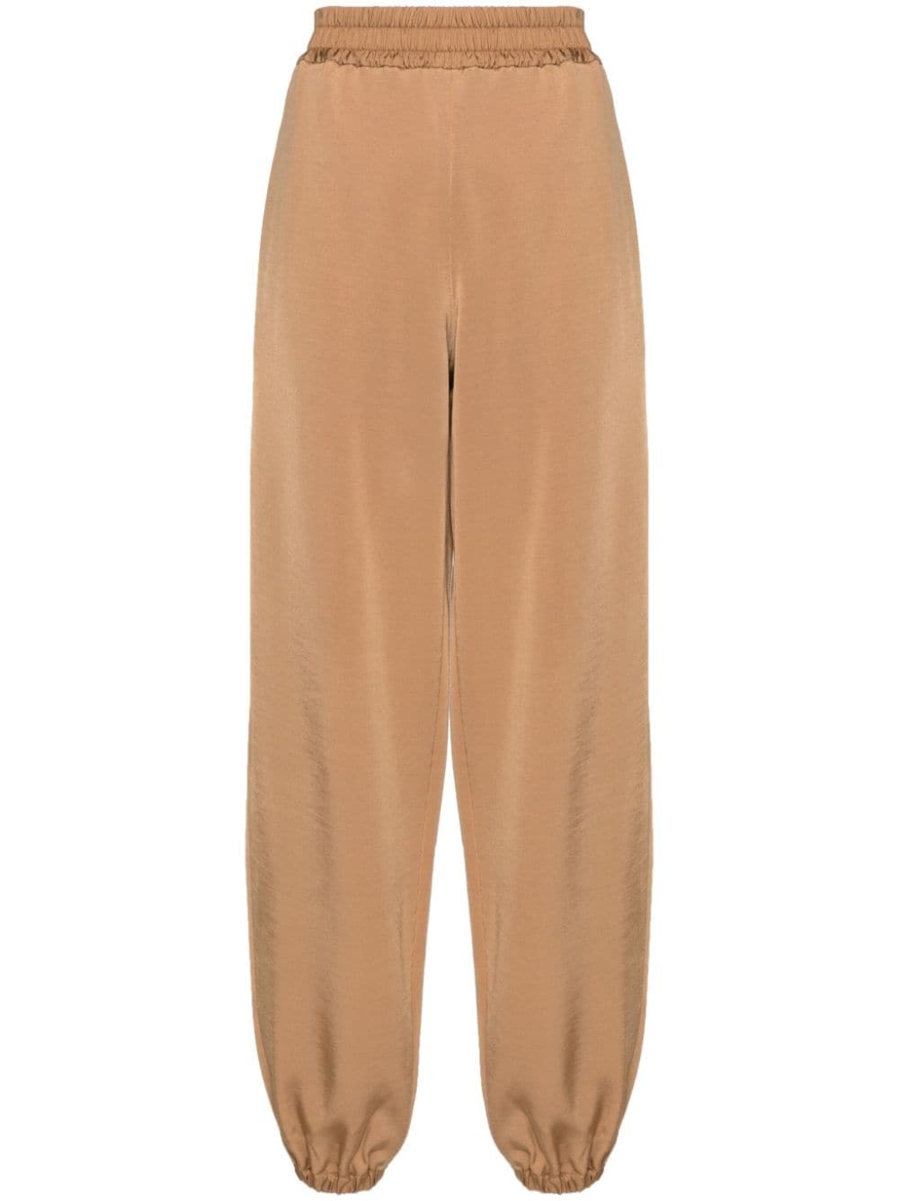 elasticated-waist straight-leg track pants Highlights - Light brown - Elasticated waistband - Elasticated ankles - Mid-rise - Straight leg - Two side inset pockets Made in Italy Composition Outer: Viscose 46%, Virgin Wool 40%, Polyamide 10%, Spandex/Elastane 4% Lining: Viscose 100% SIZE & FIT FittingInformation Designed for a relaxed tapered cut, these trousers allow for a close fit at the waist and offer a loose fit at the thighs, with a closer fit toward the ankles The elasticated waist allows for a comfortable fit Made from a midweight non-stretch fabric, this piece offers minimal elasticity when worn Measurement INSIDE LEG 29.92 in(76 cm) WAIST 27.55 in(70 cm) HIPS 40.15 in(102 cm) Washing instructions Dry Clean Only