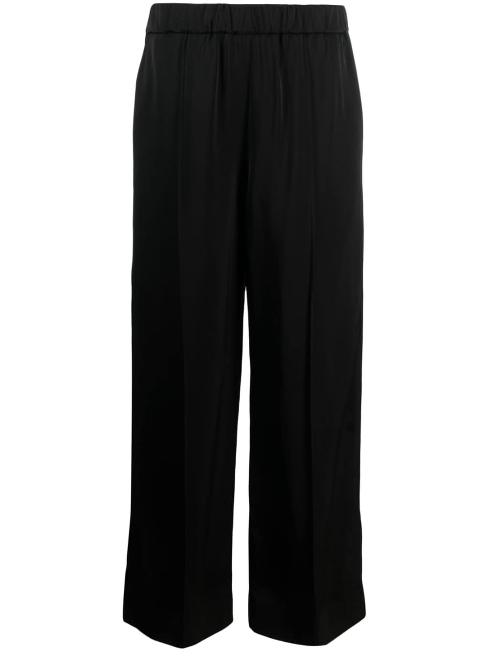 elasticated-waist wide-leg trousers Highlights - Black - Exposed-seam detailing - Elasticated waistband - Wide leg - Short side slits - Two side inset pockets - Cropped leg Made in Italy Composition Lining: Viscose 95%, Elastane 5% Outer: Viscose 100% SIZE & FIT Model measurements Height 5 ft 10 in(1.79 m) Bust/Chest 33.07 in(84 cm) Hips 35.82 in(91 cm) Waist 24.01 in(61 cm) FittingInformation Designed for a straight-leg fit, these trousers allow for a close fit at the waist and an unrestricted, comfortable fit over the leg Cropped in length Made from a midweight non-stretch fabric This piece fits true to size – take your usual size Washing instructions Dry Clean Only