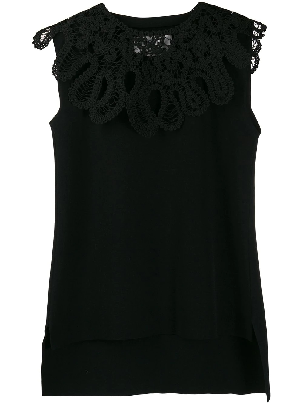 embroidered sleeveless top We know you appreciate good craftsmanship. Which is why we're certain you'll love this embroidered sleeveless top from JIL SANDER. It's all in the detail. Highlights - Black - Embroidered design - Sleeveless - Straight hem Made in Italy Composition Coque Feather 95%, Viscose 74%, Polyester 15%, Spandex/Elastane 11%, Polyamide 5% SIZE & FIT Model measurements Height 5 ft 11 in(1.8 m) Bust/Chest 33.07 in(84 cm) Hips 37.4 in(95 cm) Waist 25.19 in(64 cm) FittingInformation This piece fits true to size. We recommend you get your regular size Cut for a relaxed fit Made with a mid-weight stretch fabric Washing instructions Dry Clean Only